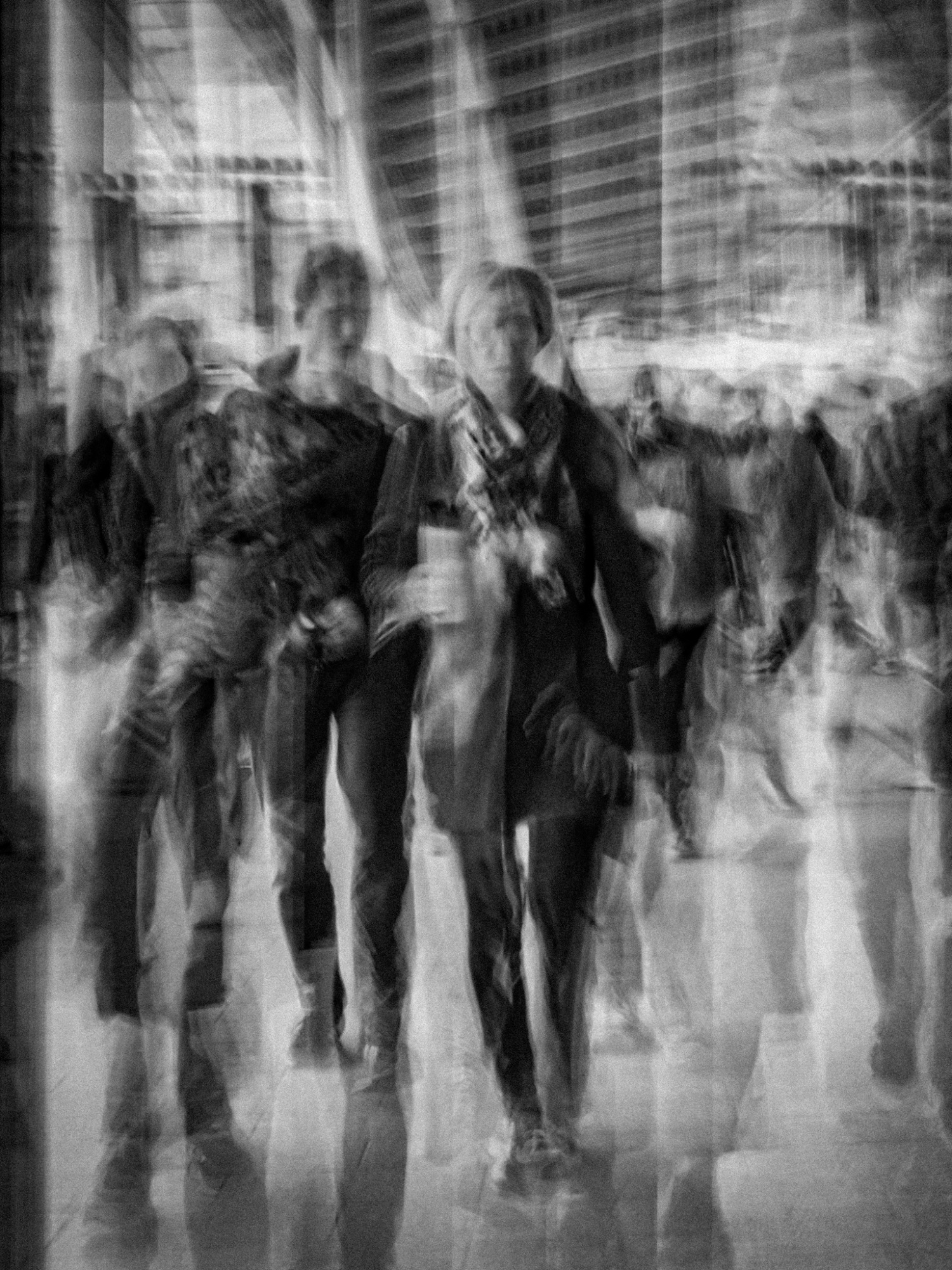 People in motion will start to vanish and travel to a twilight zone. They would appear unsettled and confused about why they are kept in the same loop every day.