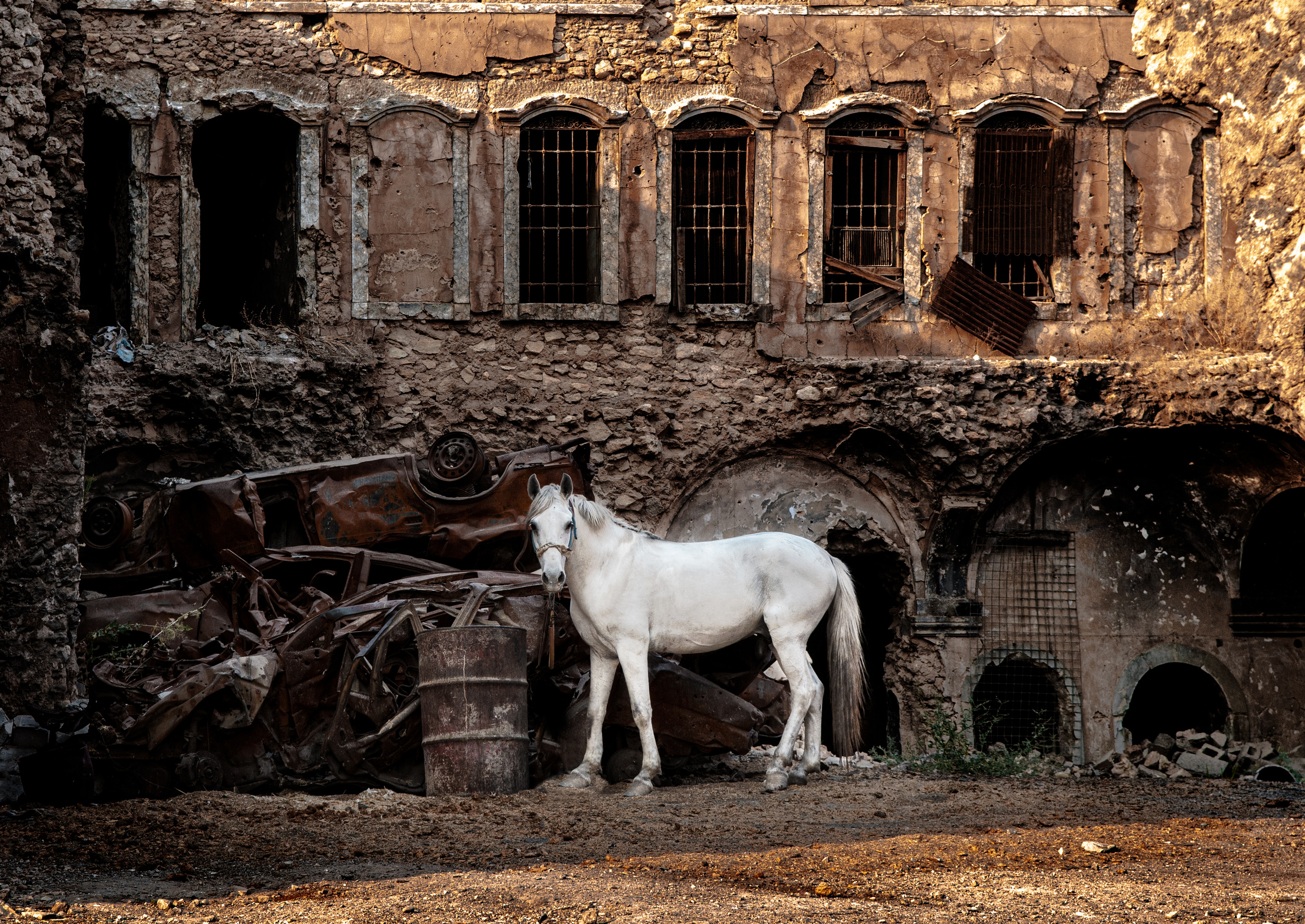 White horse in a war zone” by Saad Salem